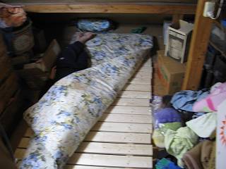 実は、自分も中学時代ここで寝ていたが、そのときは畳を引いて使っていたところ。布団がかびてしまったので、これがいいだろう。
