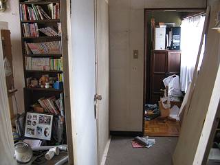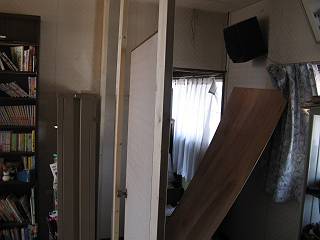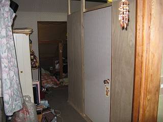 左側の写真は、部屋側からみた壁。扉や壁の上部はあえてあけておいた。