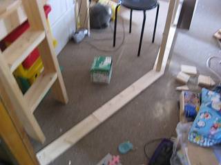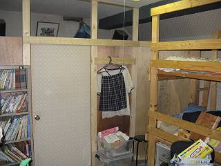 この屋根裏部屋には、今までの部屋を通り抜けなくてはならないので、部屋を壁で仕切ることにした。