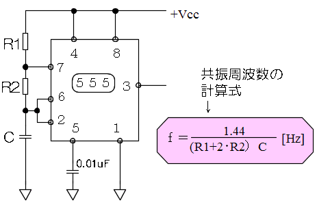 そこで、タイマーICの555を使って、非安定マルチバイブレータの回路をくんでみた。