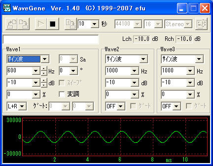 正弦波だけでなく、三角波やのこぎり波、矩形波なども出すことができる。