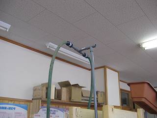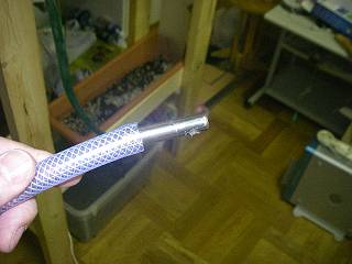 本当は蛇口でもつければ水量のコントロールが楽なんだろうけれど、コストがかかるのでホースを押さえつけることでやってみた。