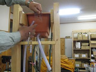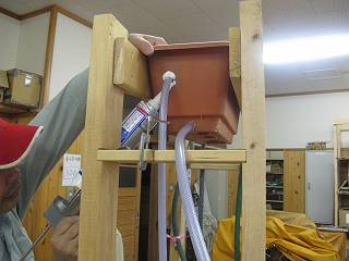 一番下につながっていたホースは上に立ち上げて針金で固定し、水位ゲージとした。