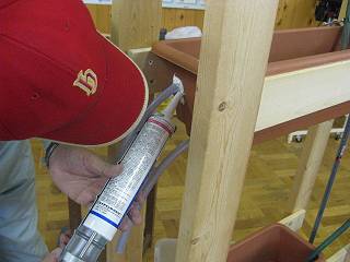 ホースをつないでコーキング剤で固める。