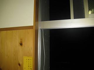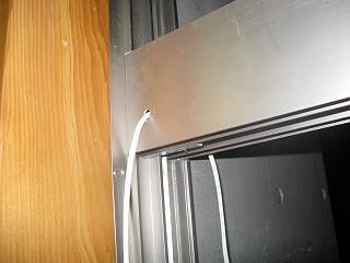 外にはコンセントがないので、サッシにドリルで穴を開けて電源を引き出した。