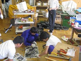 そうなると、古い椅子がゴミになるので、休日のクラブで全部分解して資源ごとに振り分け作業を行った。
