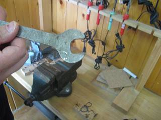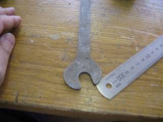 これは何とか強引に外したもの。これじゃあいくら時間があっても分解しきれないので自転車用の古いハブスパナを改造することにした。