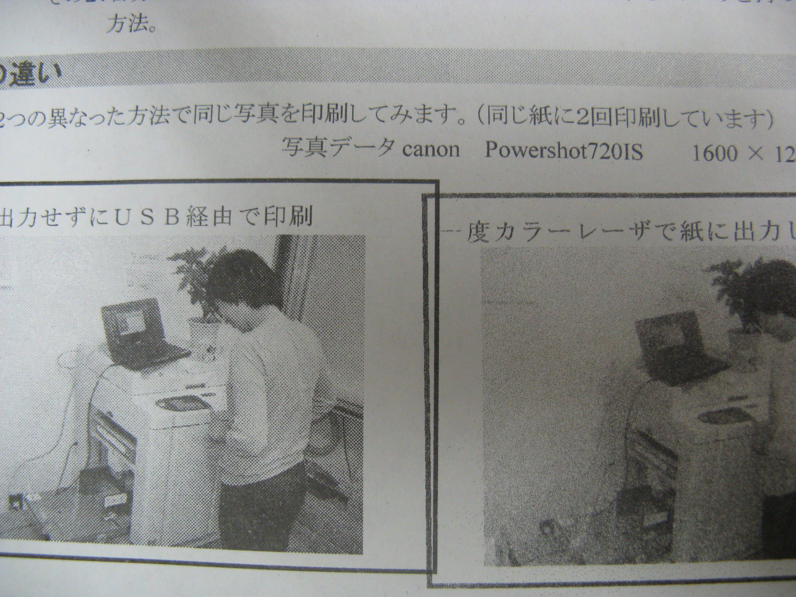 これを2つに分けて、USB直接印刷と、今までの輪転機時代に考えられる写真が一番きれいに出力できる方法(カラーレーザに出力して原稿を作り、これを文字写真モード(写真優先)で印刷)とで、2度上書き印刷してみた。
