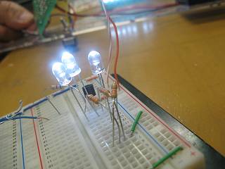 まずはブレッドボードで試してみる。元々のココナッツの基板に330Ωがつけてあるので、ベースに入れる前に680Ωを直列接続した。