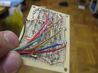 そこで、ユニバーサル基板にこの回路を配置してみた。