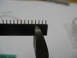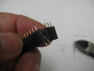 ピンソケットをニッパーで切り分けてポートのコネクタにするところ。
