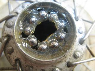 次にハブ軸を分解してボールベアリングのグリスアップ
