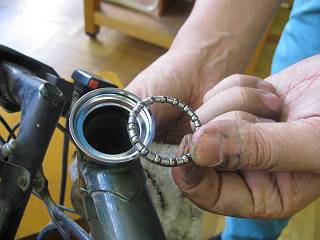 BBのボールベアリングはリテーナーでばらけないようになっているので管理が楽。