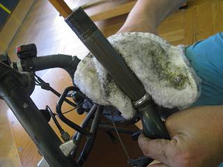 アクリルでは走っているときに、しなりが多くてずっと震えていたのと、幅が広くてハンドルを握る手にあたって痛かったのがその理由。