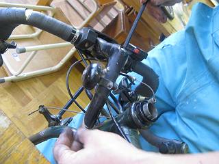 また、携帯電話のホルダーは鉄製の穴あきステーに取り替えた。