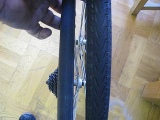 新しいタイヤは32Cなので、1.5倍以上太いものになった。転がり抵抗などが大きいだろうけれど、道路事情もあまりよくないので仕方がない。