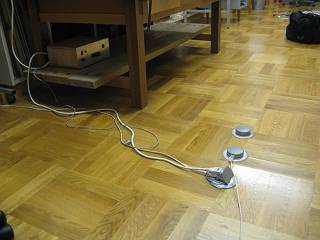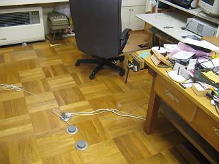 技準の使いにくさの根源である床のコンセント&内線電話の引き込み口。