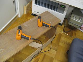 下穴とネジ締めに2台のドライバードリルで効率よく作業できる。;