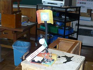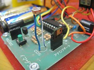 現在、技準で稼働させっぱなしになっているので前を通過すると点灯する。電池はもったいないので、外部DC入力に充電式4本の電池ボックスを接続している。