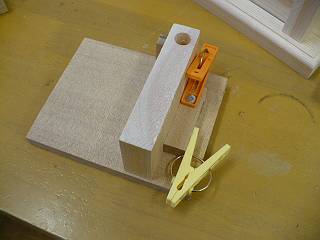 大きな変更点は、下に引く板を20mm厚のひのき材から12mm厚のアガチス材にしたことと、洗濯ばさみの固定のために溝ではなくブロック板にしたこと。