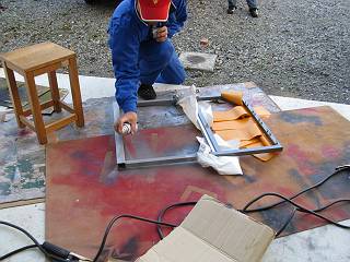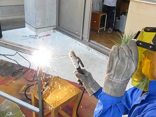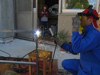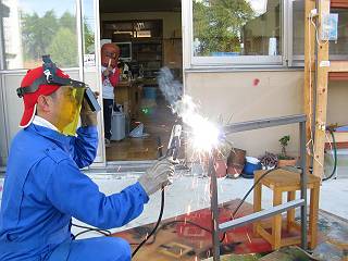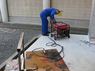 その後、エンジンウェルダーを出して溶接。今日も助手できている一番下の娘はここまでのカメラマン。
