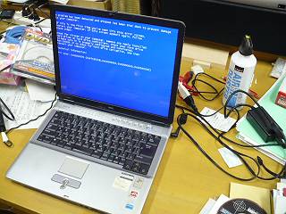 BOD(Blue screen Of Death)がでて、起動しないXP。まあ、かなり使い込んでいるものではある。