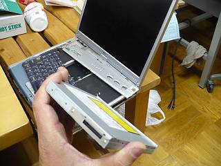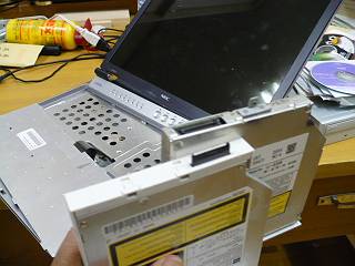 手持ちの薄型ドライブに交換しようと思ったが、IBM製でコネクタの位置が違っていた。