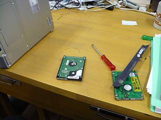 壊れる前に、HDDの音がおかしかったというので、定番のHDDの故障だと思い分解。