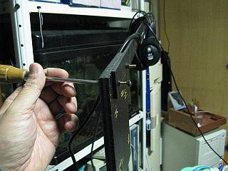 裏側には、ディスプレイスタンド用のねじ穴があいているので、家のものを置き換えることにした。