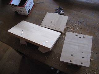 昨日接着した木材を裏側からコーススレッドでさらに固定する。本数も多くしてがっちり作った。