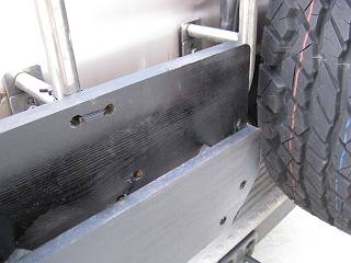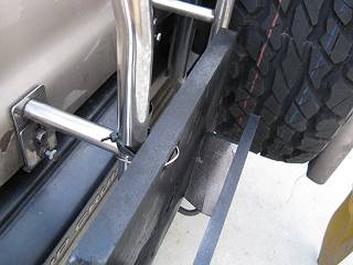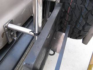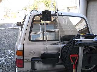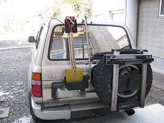 3代前のランドクルーザーBJ-41V(最初に所有した車)にもスコップを取り付けていた。そのときは、鉄のガイドを溶接していたが、さすがに今回はそこまでやらずに、背面ラダーに取り付けた。