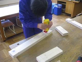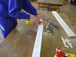 時間も限られているので,材の切断は自分が機械で行う。すべての行程を写真で撮影して文化祭の発表に備えることを指導。