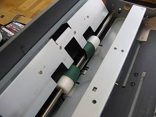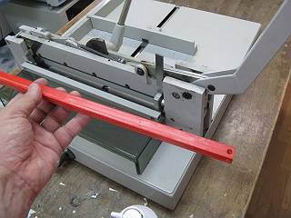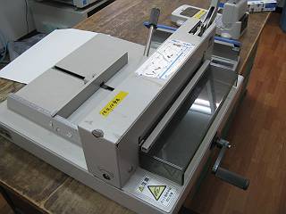 もう一つは裁断機。こちらは重ねてばっさり切るタイプだが,刃の調整が悪くていつも数枚が切れずに残っていた。