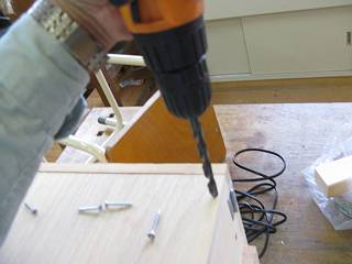 ドライバドリルを2つ使って、下穴とねじ締めを行う。