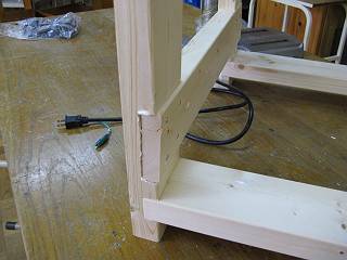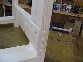 上の部分は前後に材を渡して構造体とし、固定用の穴の下にもう一本入れてボルトで留めた。