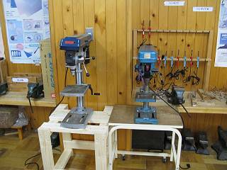 狭い技術室なので、今まで以前のボール盤があったところに今回のものを置いて、使うときは以前のもの(キャスターがついている)を横に動かして展開した状態で使おうと思う。