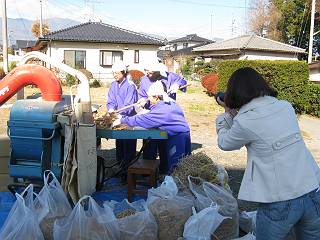 今年は、地区生徒会顧問と言うことで担当している。晴れた土曜日に科学・技術クラブの生徒と一緒に脱穀をした。