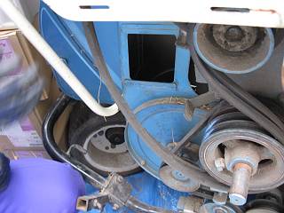 まずは、前回切れたVベルトの交換から。