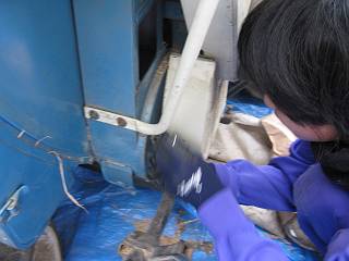 9時から始めて、まず交換作業から。一番奥のベルトなので、前の方を外そうとするがカバーなども外すのに苦労した。