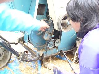 一度止まると、脱穀した籾をはねあげる羽のところは一度かき出さないと動かない。