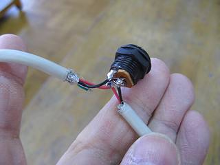 DCジャックは,差し込むとUSBの雄コネクタからの電源ラインは切断されるように取り付けた。