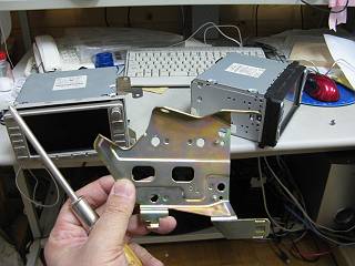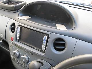 まずは、コンソールボックスを分解する。専用工具もないので、ネットで手に入れた知識によりガムテープを貼ってメーターナセルを外す。