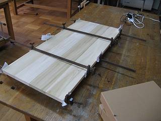 とりあえず、天板を貼り合わせで作る。4枚はぎの40cm、3枚はぎの30cmの2種類を作る。