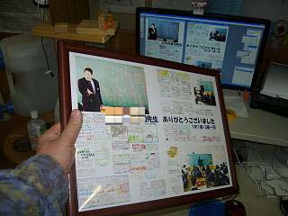 終わった後で,3ヶ月ほどお世話になっていた臨時の先生へのお礼のパネル製作をした。