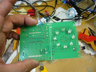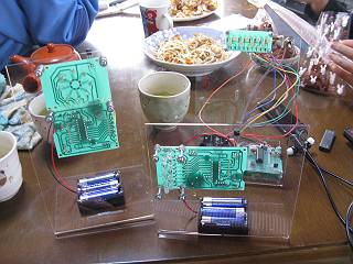 今回初めて製作した丸形配置の基板続き版。さすがにこちらはランドがつながっていないので配線をジャンパーで。