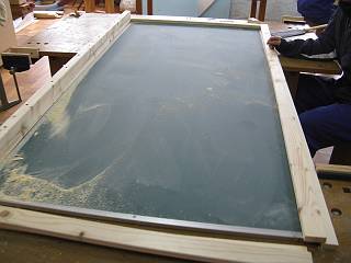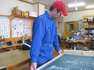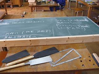まずは、フレームから黒板を外して技術室に持ち込む。