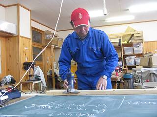 トリマーで押さえるための溝を掘る。
