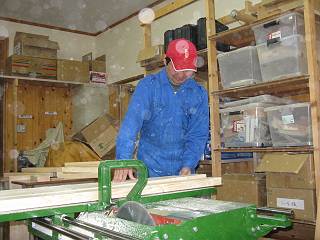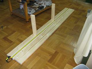 毎度の2×4材を利用して製作することにして、長さを決めて機械で切断した。
