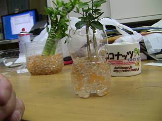 先日100円ショップの高分子ポリマーを使って水耕栽培を始めてから3週間が過ぎた。