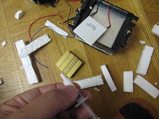 真鍮板も,大きいものではなく,ペルチェ素子と同じ大きさになるように角材を4本並べることにした。